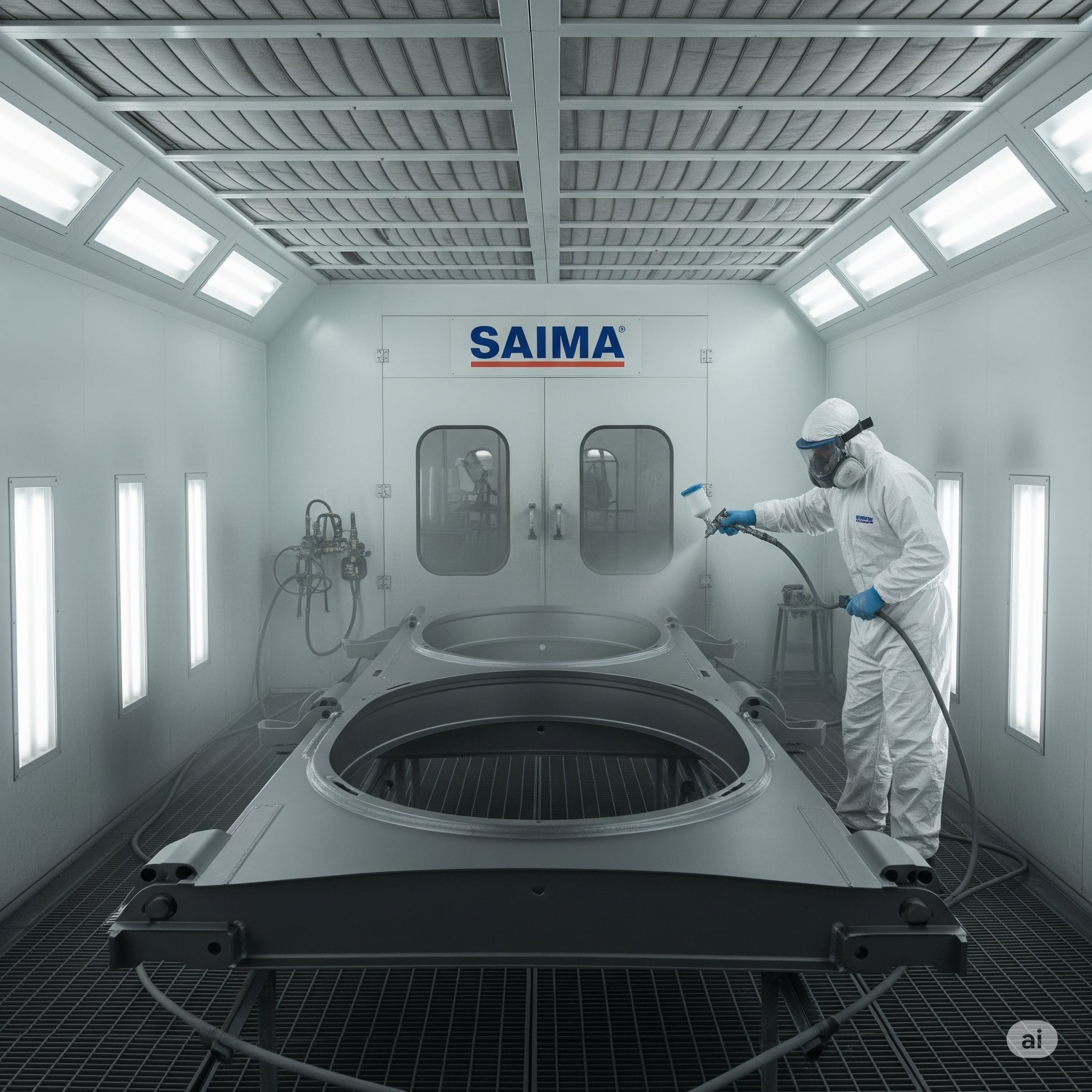 Nasza lakiernia jest wyposażona w dwie profesjonalne kabiny lakiernicze marki SAIMA, które gwarantują najwyższą jakość i precyzję lakierowania. Kabiny te są przystosowane do pracy z dużymi elementami, co pozwala na realizację nawet najbardziej wymagających projektów.